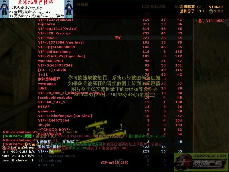 | 8 | 2011-6-29 13:39:00 | 【92丧尸升级服】会员VIP-123xo购买OP权限把玩家VIP-m520处死了 |