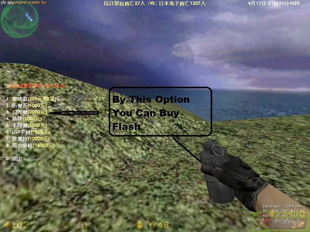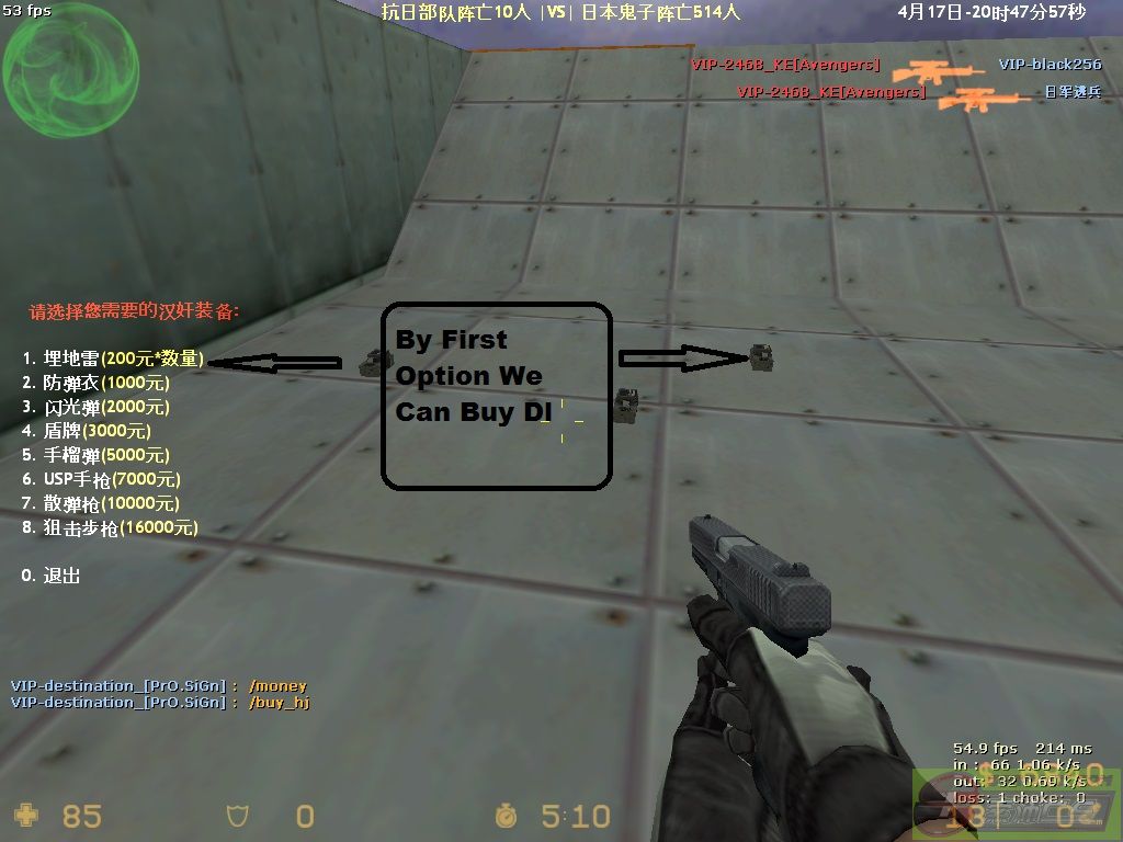 | -- 作者:50cent_ -- 发布时间:2013-04-18 17:55:00 -- The Options Used In Counter-Terrorist :- In Counet-Terrorist We Have To Type Say/buy_hj To Have All The Otions Of Counter-terrorist I Will Teach The New Commers The Options OF Counter-terrorist After Typing /buy_hj The Figure Will Be Like This The First Option Help US TO Buy Dl Its Starting Money IS 200 It Depends Upon The DL that How Much We Plant As Show In Figure The Sceond Option Help us To Get jacket For RS 1000 Thousand By The Third Option You Can buy Flash For rs 2000 thousand By The Fourth Option You Can Buy Shield For RS 3000 thousand The Fifth Option Is Used To Buy The Hand Grenad For Rs 5000 thousand The Sixth Option Is Used For Buying USP (pistol) for 7000 thousand RS By The Seventh Option You Can shot Gun For Killing Terrorits People for Rs 10000 Thousand And This Is Last Option Eight option You Can Buy Scout Gun [此贴子已经被作者于2013-4-19 15:00:33编辑过]
