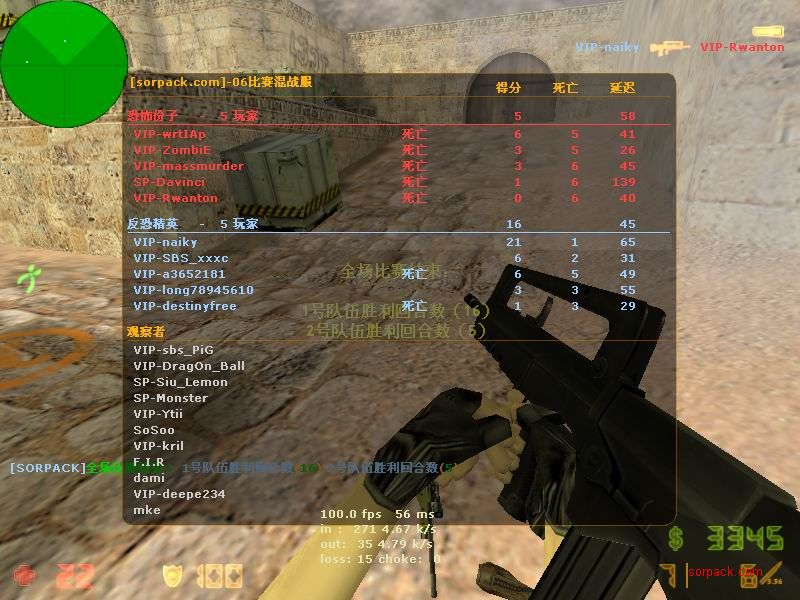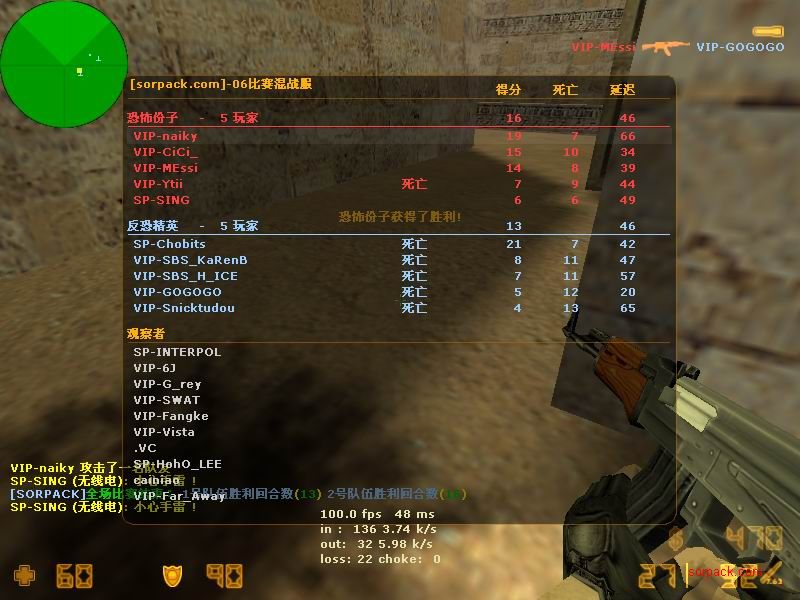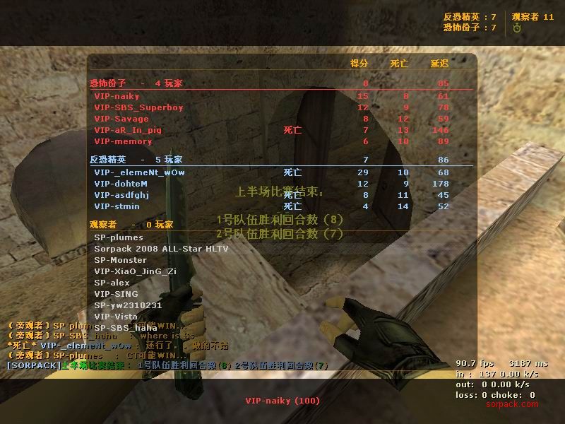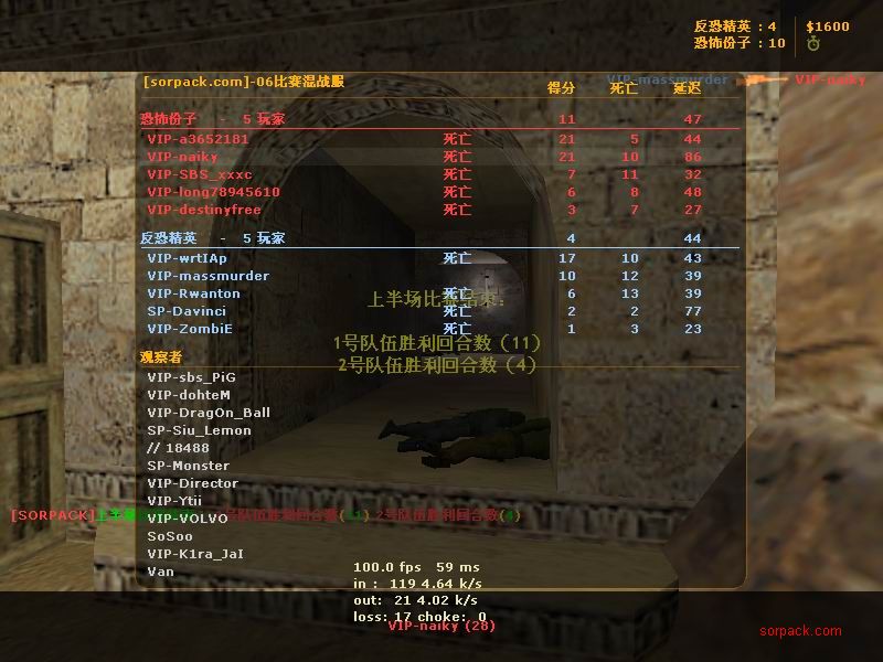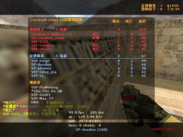 这应该是我被鸭子刀杀的那场比赛。。 我们的B点埋包后的camp实在是太烂了 也没有互相之间的掩护。。 鸭子竟然从狗洞钻进来刀了我 当时真的很无语。。。 =。=!!! messi的枪也蛮厉害的 我对枪很吃力。。 AV男掉线了 赶紧抓一张!! 掏出匕首的瞬间!我在打1.5 ! 左边的人快撑不住了。。