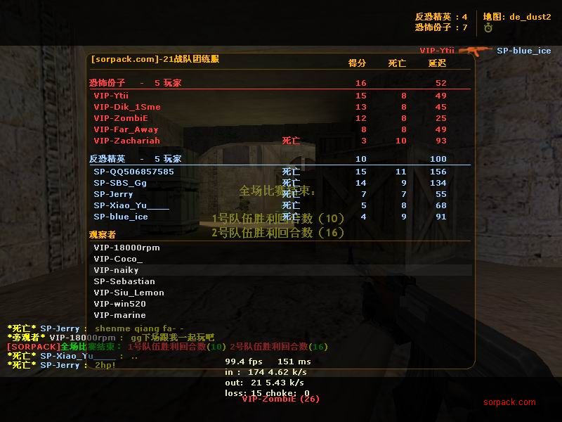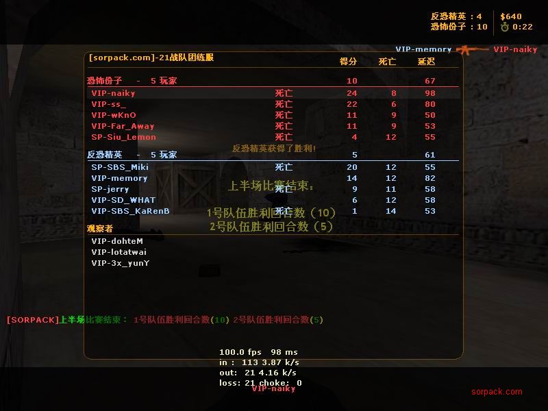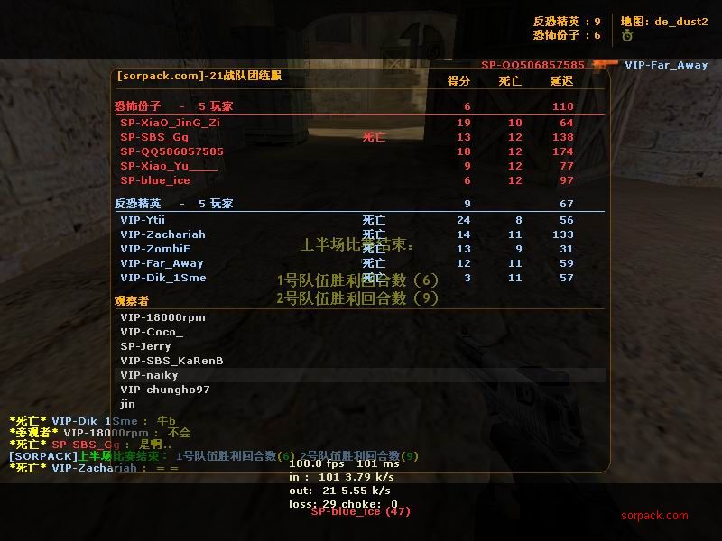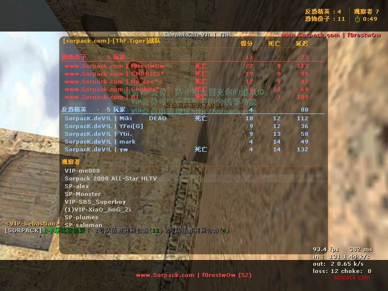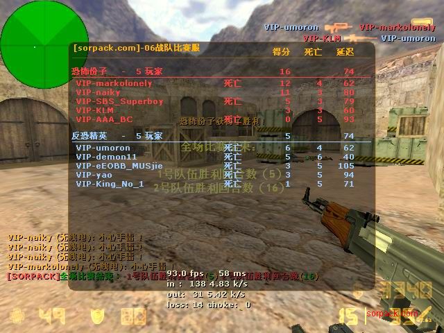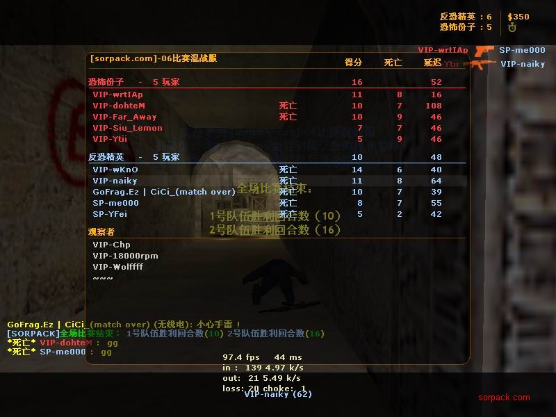 傻怪倒了 哈哈 有lead 也要打~ gof对sbs win! 有人跑了。。。 受不了虐啊 我死的好多 。。 死了14局 我擦。。 又是一场D2 虽然输了 不过有frag可以安慰我 不过要记住 拿frag不是目标 多给队友创造机会 多给队友提供炮弹才是一个好的队员 我希望我能成为输送炮弹 给队友断后的那人 也就是靠山吧 哈哈 (队友,我帮你瞄着,你就放心的转移吧;我当炮灰,你来清了他们。 @_@) 又是连续3张的战绩图 最先死的是我。。 4位SP也登场