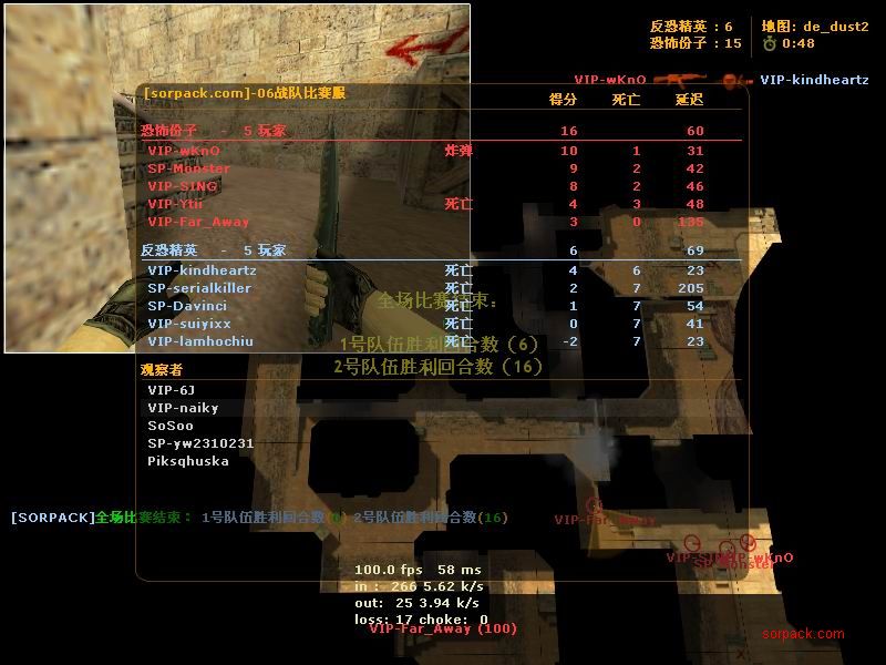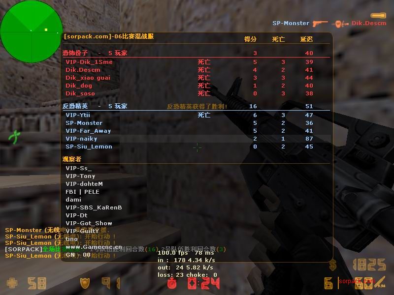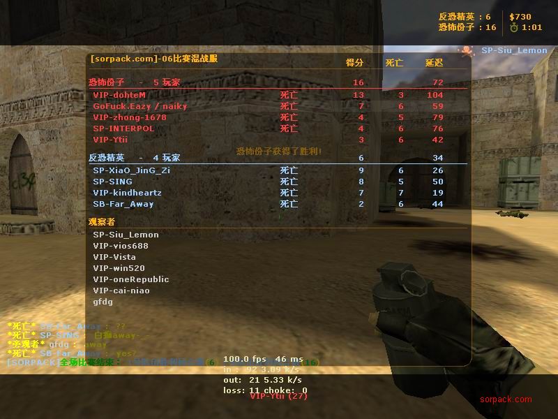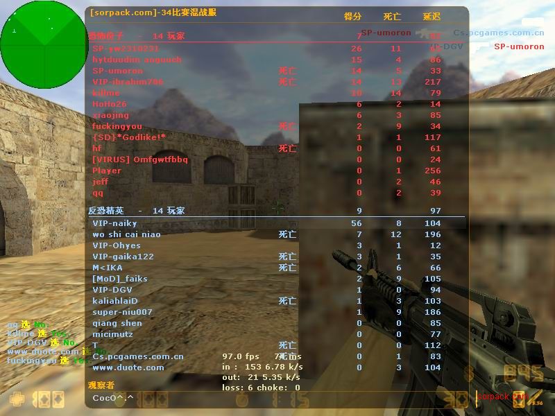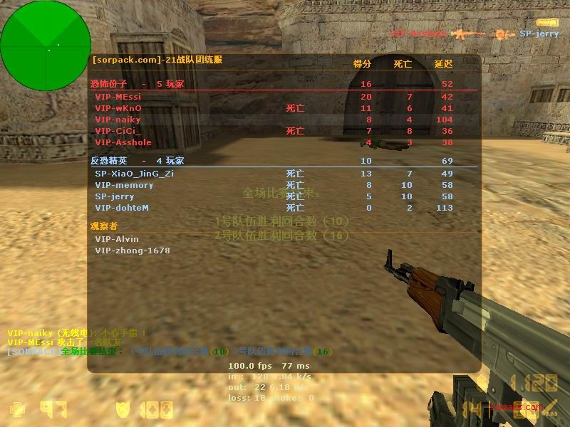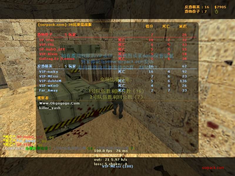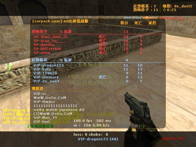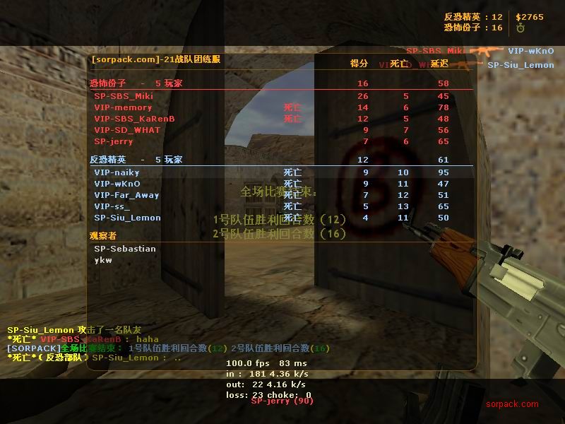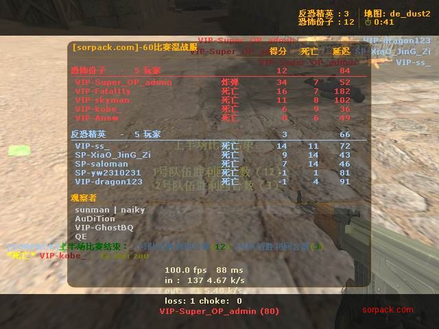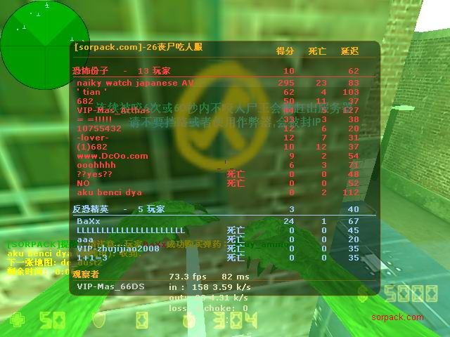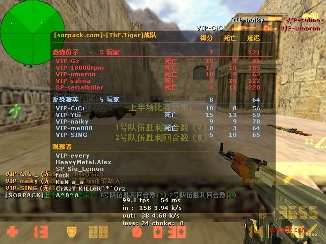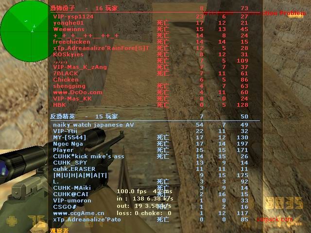 我们的财富!1CE! 有空来看我们吧~ 外挂进游戏的后果。。 SPvsVIP 自索沛连坐时间之后的那几天 我去拜访了castB.S 。。。 有准心的AWP 死的有点多。。 又是一场世纪大战 观众好多~ super OP admin 高手一个。。 我的实力比他差多了 不过我和他也不是一个风格的。。 画面中躺着呢VIP是作弊 他在SP眼皮底下开作弊 可想而知 遭封禁了 哈哈 (我是被他给阴的。。。) SB monster 杀了3个。。 TK多了会被系统踢出去的 cici!! 又发现了一个high frag :D 你们能看到我的成绩和名字吗。。。 我看不到 bind 。。。。 我在绑定东西。。 away的重磅炸弹 我想他没有截图留纪念 不过我留了~ :) 我在这里严重警告你 上这里是违规的 如同作弊 权力大就可以不顾别人说你上去吗 还在那里看A大 。。 我也小爆两个 开外挂的不服。。 到TIG服玩了玩 maximus! 此主题相关图片如下:![]() [此贴子已经被作者于2009-6-25 15:40:27编辑过]