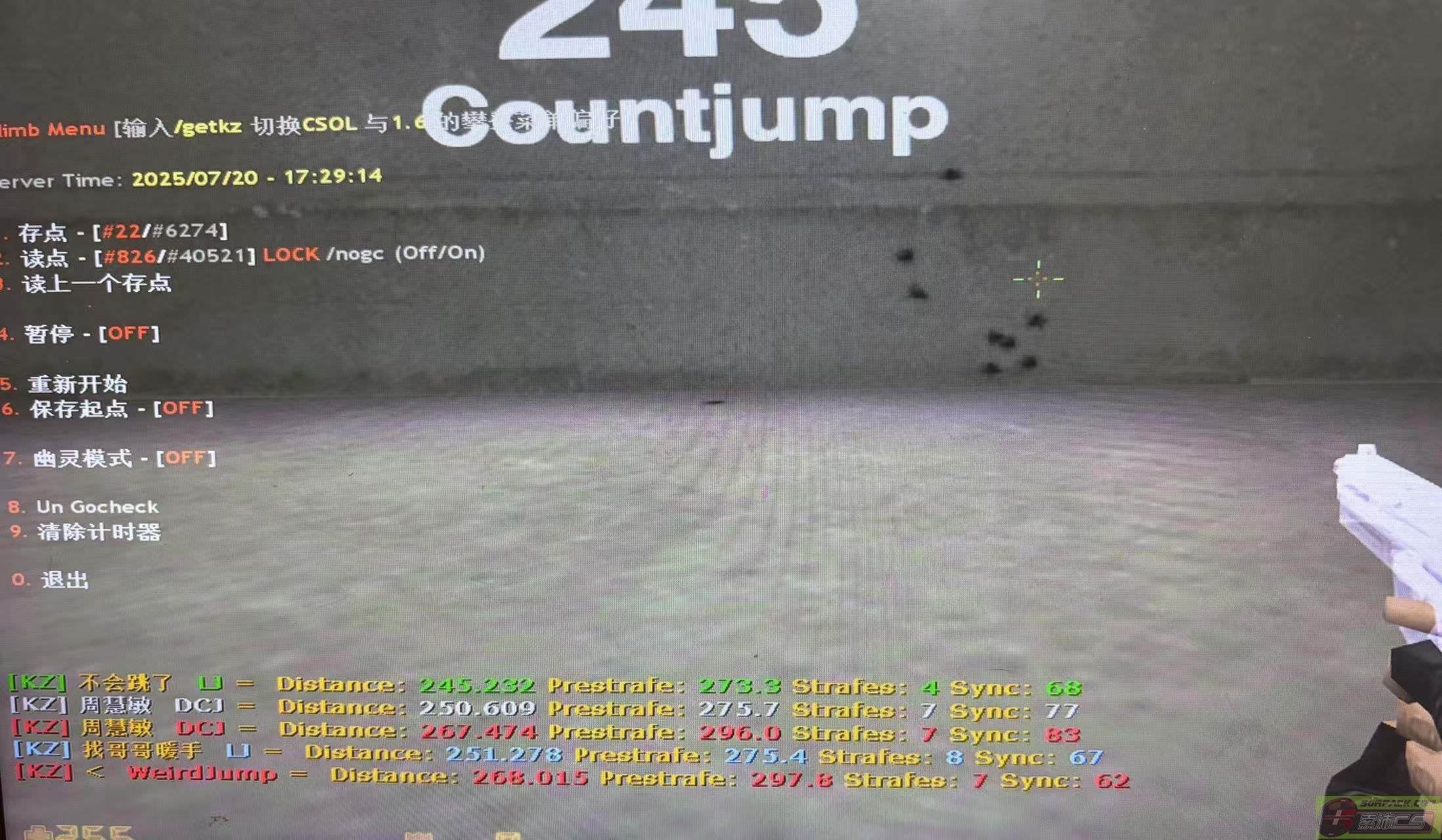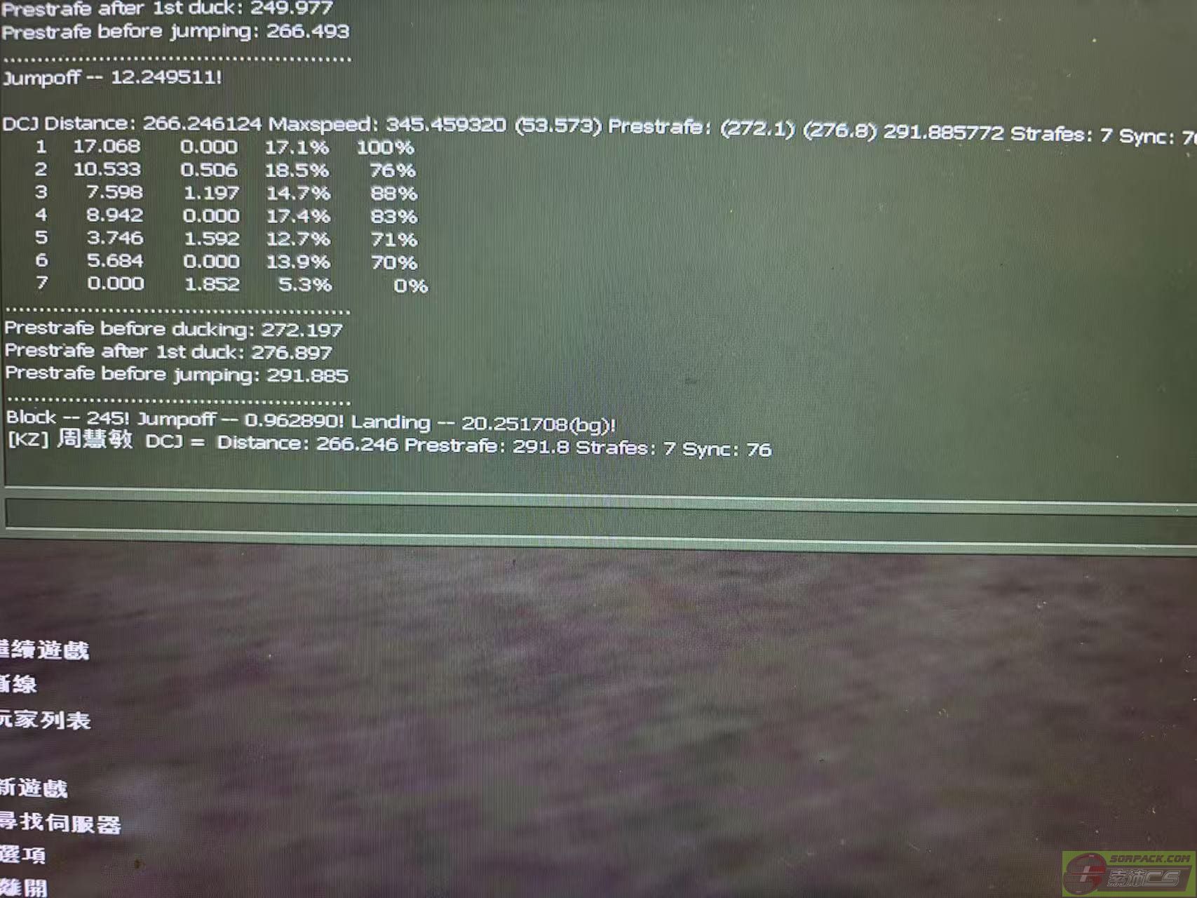 练了一个下午dcj 从只能跳240距离到跳出266数据 过程虽累但很有成就。