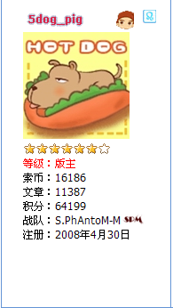 | -- 作者:5dog_pig -- 发布时间:2010-09-20 17:43:00 -- 恭喜你,樓主你得到一條毛 |