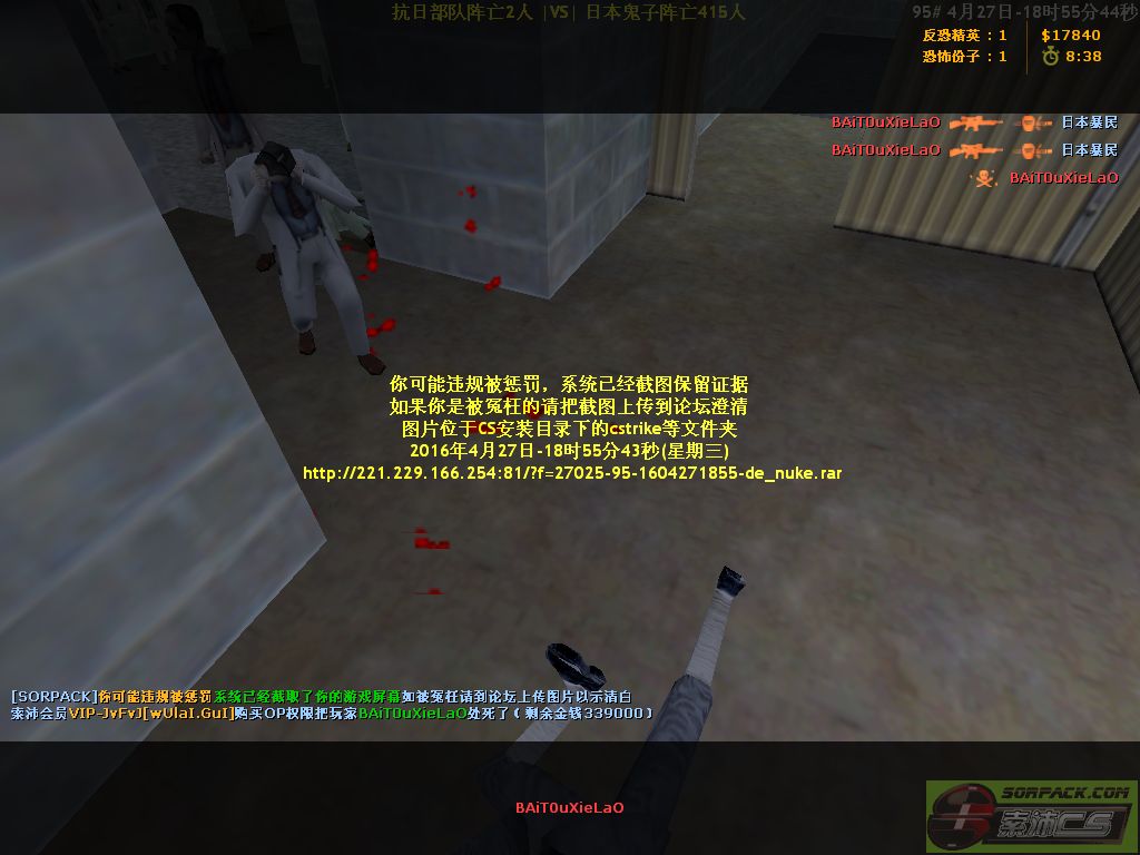 | 4 | 2016-04-27 18:55:00 | 【95抗日战争服】会员VIP-JvFvJ[wUlaI.GuI]购买OP权限把玩家BAiT0uXieLaO处死了[Demo] |
