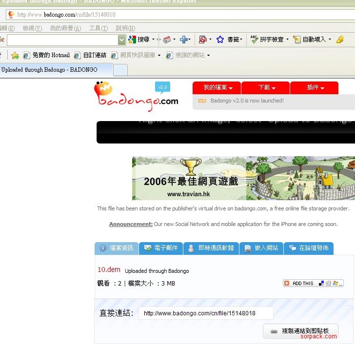 以下是引用chuhoiau在2009-5-27 03:18:00的发言: 文件太大 传不上来 放空间上去了