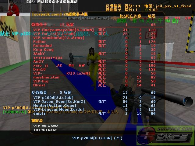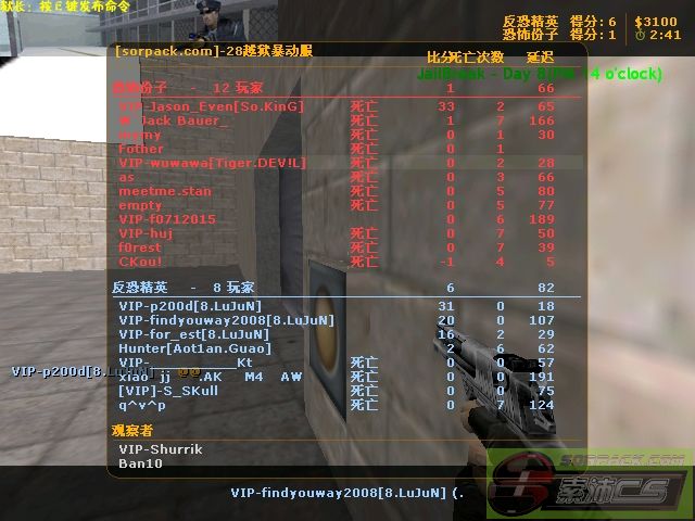 注意红色衣服旁边 有支 沙鹰 老大可以 设置 CT开场后 恶意扔枪 就给系统处死? 虽然木头人 可以走几步....可一不留神...CT什么时候扔支枪给你也不知到....躲开也不是方法 CT连win六场 之后7场内 那人 从xy分 刷到了zy分 当然 扔枪 不是主要刷分问题 看看最后那2张图...就像有人特意开N个马甲刷分 都是 跳远 惹的祸 狱长 不是 木头人 就是 跳远 跳远的时候 还射你几枪 跳得远不远 是要靠技巧的.....和其他指令不一样....木头人...蹲下,,,连跳...自残等 这些都是简单的动作 这只要不是文盲 都能按着指令进行 玩cs的 有多少个会跳远? 集合还不如跳远,便宜更有效 希望老大能删除 跳远功能 其实还有很多问题....希望老大有空 能开个马甲 进去 观察观察~