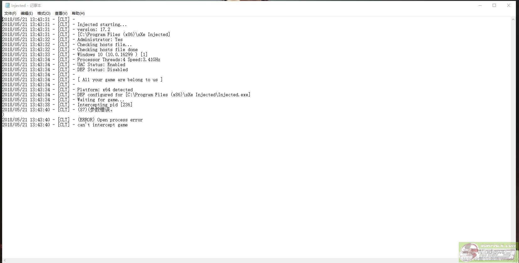综合就是截取到特征码236 就是你乱七八糟的东西注入被SXE检测到了 被检测的特征码为236 后面那句话是告诉你哪里违规 参数错误的意思就是告诉你 你自己cfg或者模型有违规项.