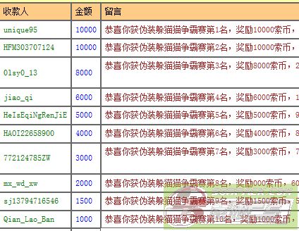 恭喜伪装躲猫猫争霸赛圆满结束,奖励已发放
