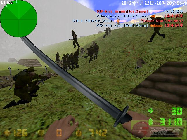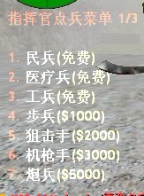 原来的Z、X、C三个无线电控制键被替换成控制士兵键,游戏开始30秒前按E是选兵键,最高可选10个士兵。其他键均为cs1.6原版游戏按键。
