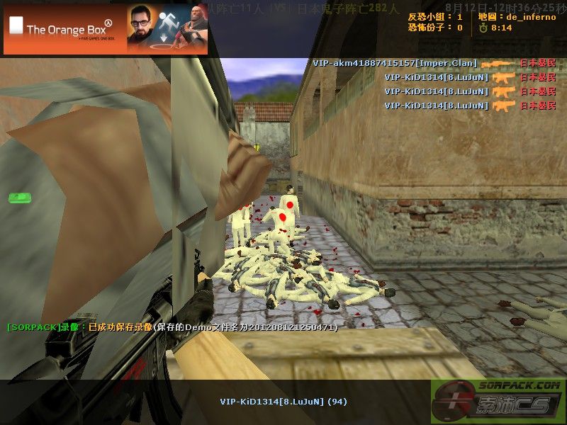 录制者:VIP-yiufat1991[最愛初音] 嫌疑人:VIP-KiD1314[8.LuJuN] 时间:2012年08月12日 12:36:22 服务器:[sorpack.com]-85抗日战争服(Imper.Clan) 地图:de_inferno