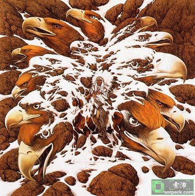 能否看出雪山上神秘的大灰狼等一些动物的头像?