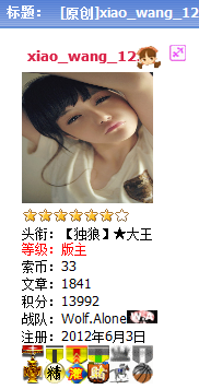 头衔:【独狼】★神仙