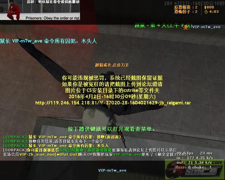 | 13 | 2016-04-02 16:30:00 | 【28越狱***服】会员VIP-2b_xiao_nuo[wUlaI.GuI]购买OP权限把玩家VIP-mTw_ave处死了[Demo] |