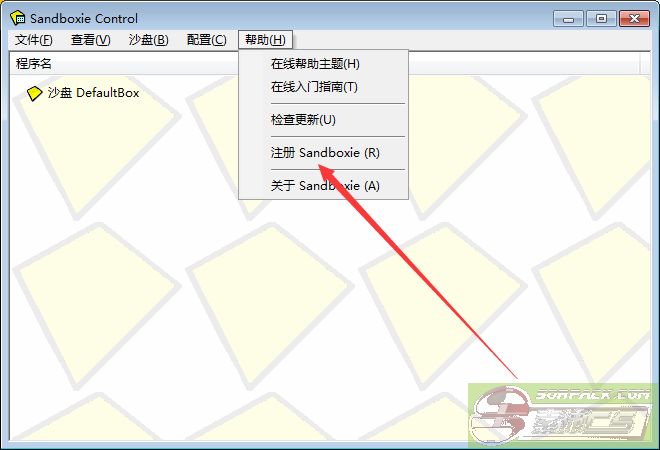 3.点击帮助   注册sandboxie (R)