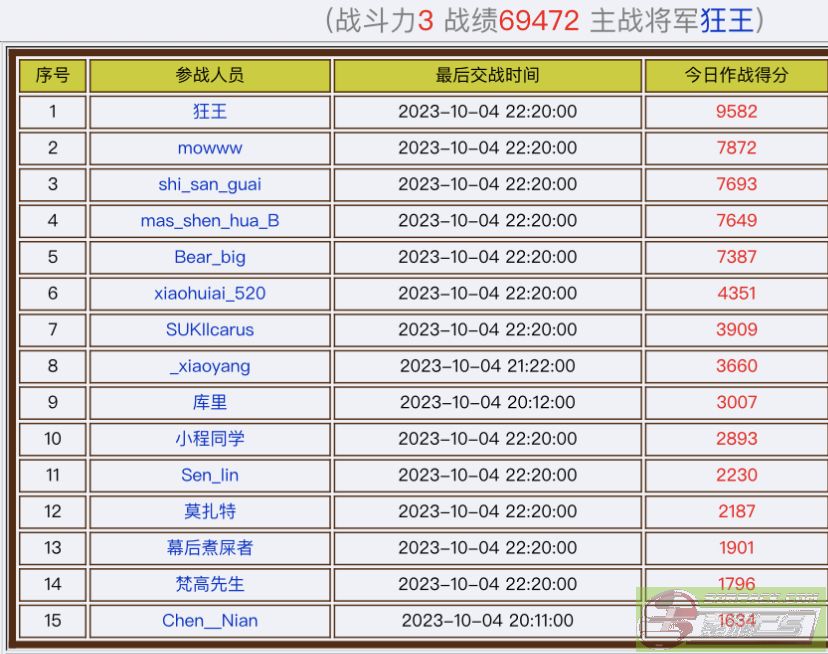 战绩排行