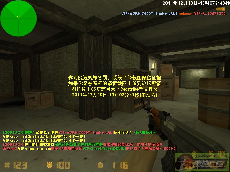 | 1 | 2011-12-10 13:08:00 | 【80幽灵暗杀服(SnaKe.LAL)】会员VIP-man_s_g_vip购买OP权限把玩家VIP-S0so[Tiger.DEV!L]的IP封了 |