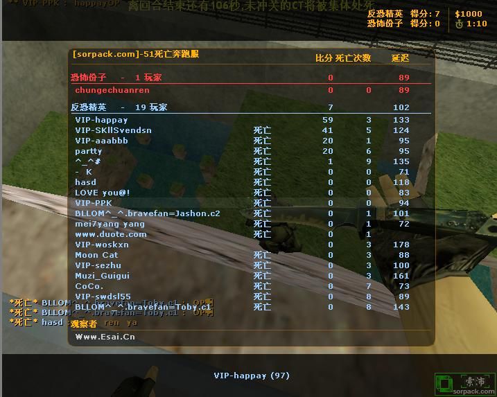 一直挡人 在死亡奔跑F 不给人上来 还把枪全丢了 一直挡了几分钟 然后我截了几张图  OP处死了他 他后面买解药后 把我给OP了 请管理的人员封掉吧 这真的怎么会有这些人存在 真的太过分了吧 居然还OP回我?  下面的图: