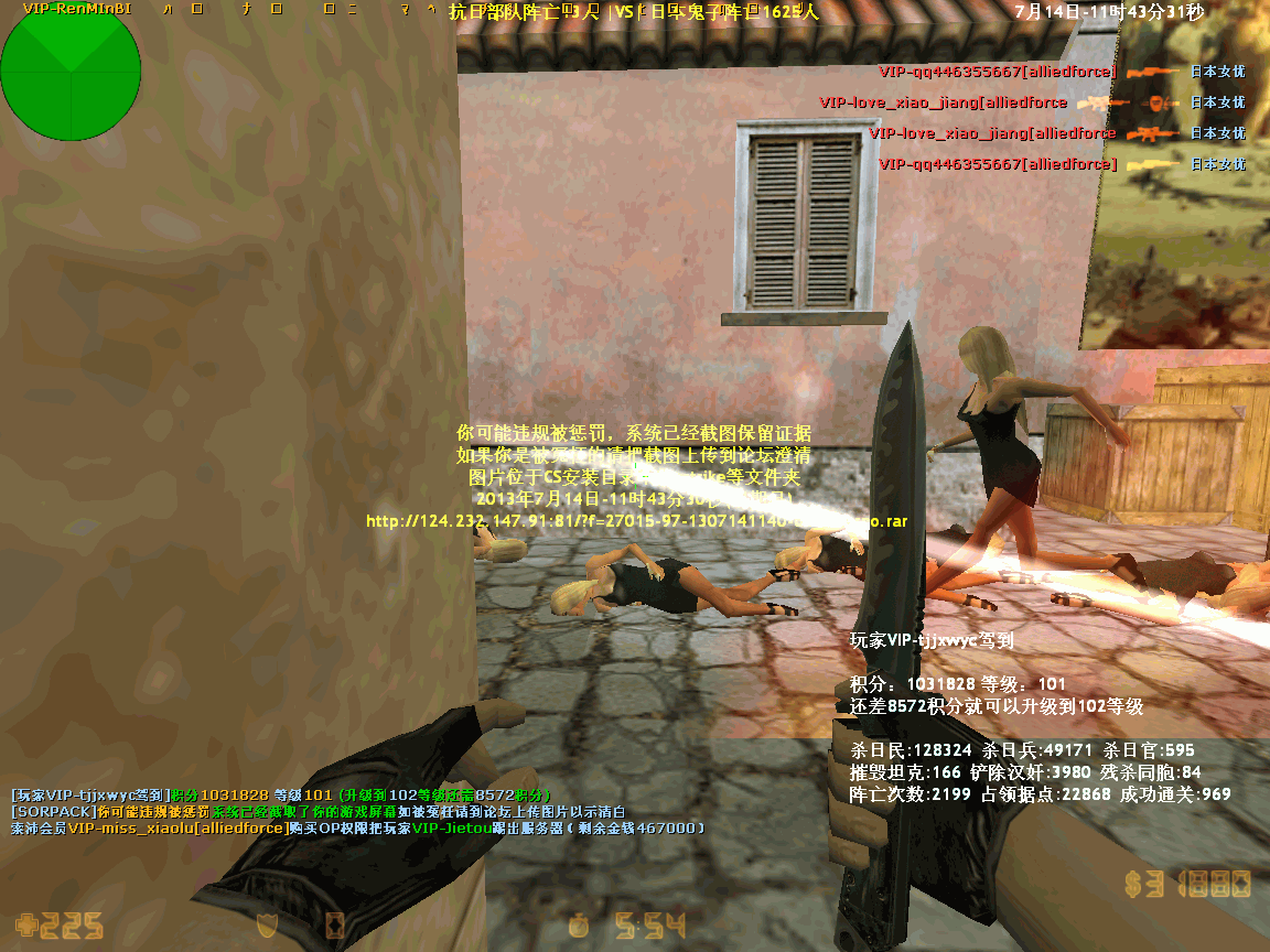 【97抗日战争服】会员VIP-miss_xiaolu[alliedforce]购买OP权限把玩家VIP-Jietou踢出服务器