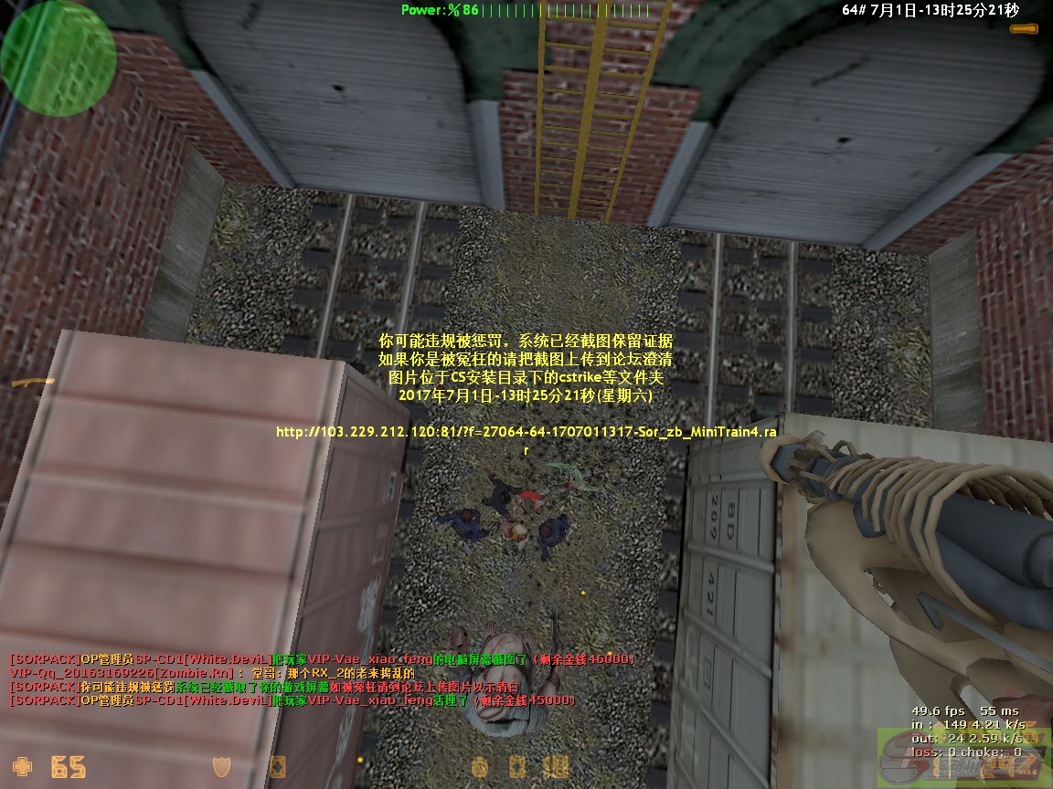 132017-07-01 13:27:00【64丧尸升级服】管理员SP-CD1[White.DeviL]对玩家VIP-Vae_xiao_feng进行双方截图[Demo]