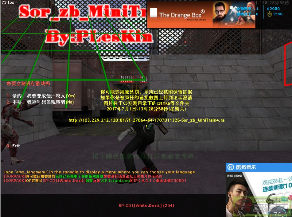 92017-07-01 13:28:00【64丧尸升级服】管理员SP-CD1[White.DeviL]踢出玩家VIP-LiyunLong[Demo]