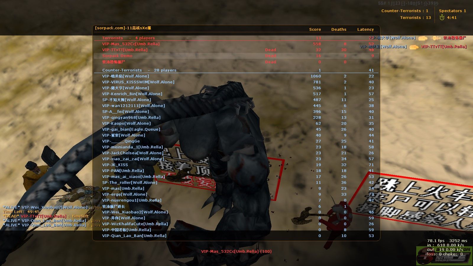 272022-01-23 18:49:00【55丧尸升级服】管理员SP-The_roller[Wolf.Alone]停止惩罚玩家VIP-xiao_zai_zai[Demo]