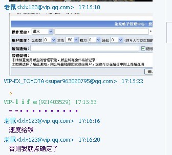 希望能为我做主的超版 认真看完 , , 看看老鼠是一个怎样的人 我并不是为了 那几十SB投诉他 只是为了能够知道索沛里面是否有公道 版主就可以随便勒索别人? 扣别人钱? 最初也有过这种事情 老鼠不是第一次做了 不过之前他确实没扣我钱 我也就当 是他和我闹着玩的 可是 请大家看一下他今天的语言 换作是你 你能忍得了?