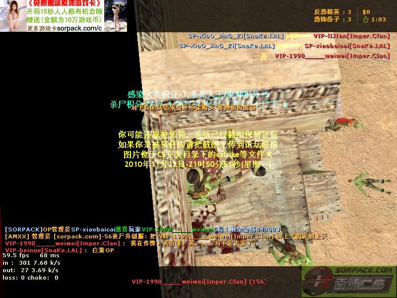 252010-11-22 21:51:00【56丧尸升级服(SnaKe.LAL)】管理员SP-xiaobaicai把玩家VIP-1990_____weiwei惩罚了5局