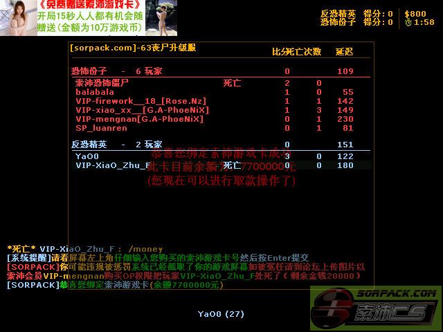 我刚进游戏,可以看我取钱的图,我才刚进去,就被OP,由于刚进去,是死亡状态,没有黄字,版主可以自己测试下。