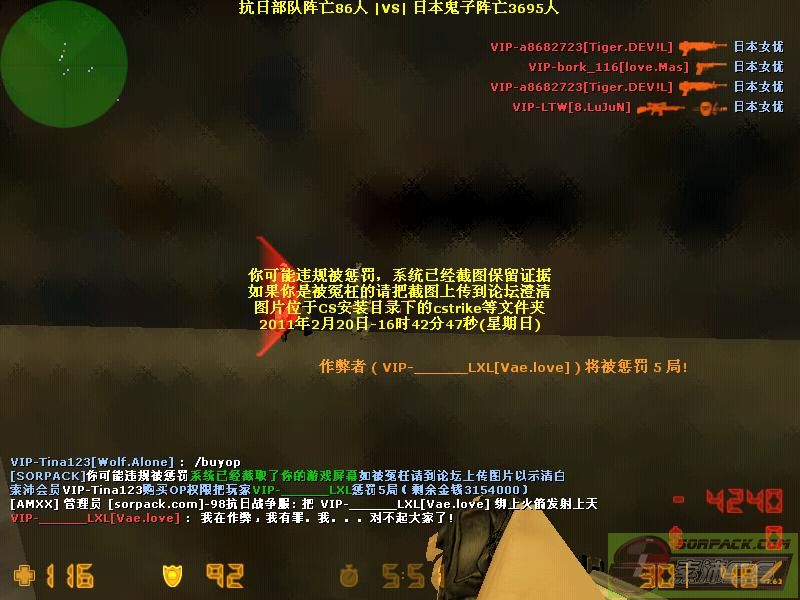 【98抗日战争服(8.LuJuN)】会员VIP-Tina123购买OP权限把玩家VIP-______LXL惩罚5局