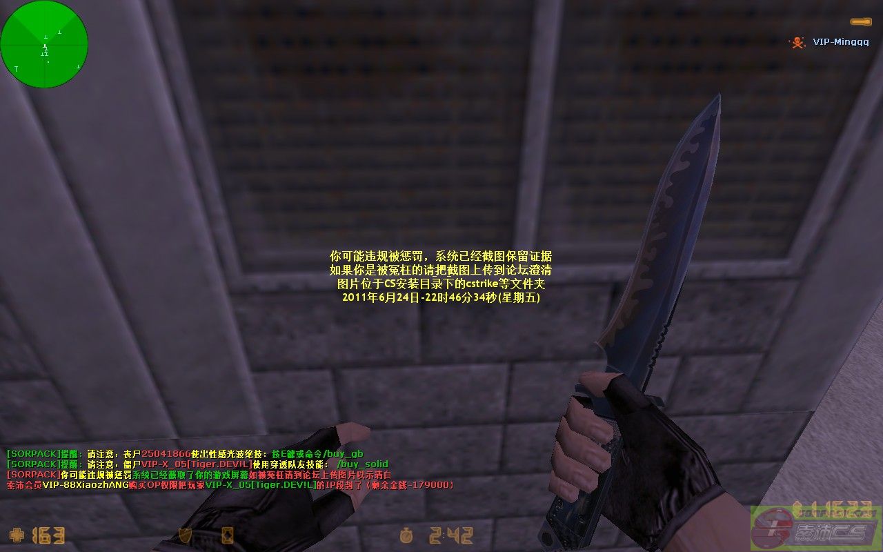 132011-6-24 22:46:00【55丧尸升级服(Tiger.DEV!L)】会员VIP-88XiaozhANG购买OP权限把玩家VIP-X_05[Tiger.DEV!L]的IP段封了