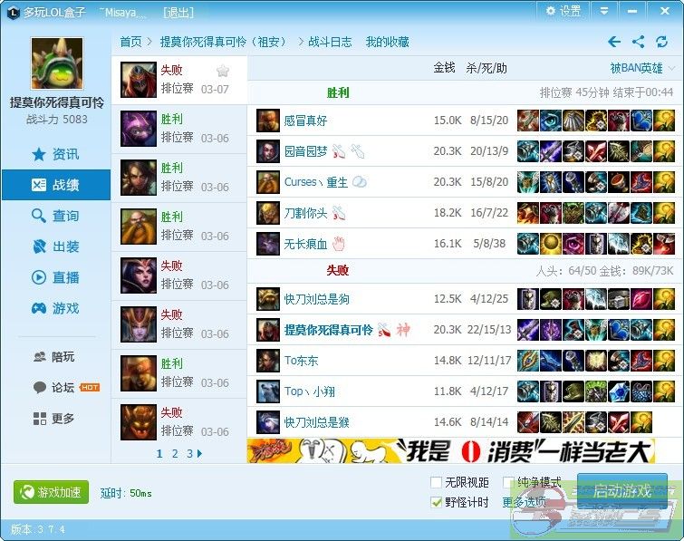 4500战斗力 呵呵 小炮 代练的战绩图我没有 我比不上你哦