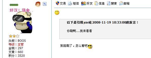 以下是引用tianzhilong在2008-11-19 13:15:00的发言: 所长发话 谁敢不服啊 大家说是吧 恩所以我才服