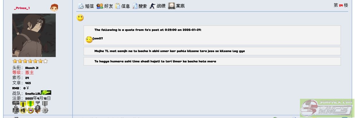 | -- 作者:fa -- 发布时间:2026-01-25 5:55:00 -- 以下是引用_Prince_1在2026-01-25 5:43:00的发言: 是的,“sharm to kar leta budde” 明显是侮辱性的话。 为什么? “budde”:针对年龄的称呼,带有不尊重、贬低的意思 “sharm to kar leta”:带有嘲讽和羞辱的语气 整句话的语气是嘲笑 + 贬低 👉 大致意思是: “你本该有点羞耻心的,老头。” 这不是普通的玩笑,而是直接的语言侮辱,尤其是在生气或公开场合说出来时。 什么时候会变得严重? 在公共场合说 多次重复 明显目的是羞辱对方 此主题相关图片如下:![]() 我没有侮辱你,只是回答了你的问题。你忘了自己吃了什么吗?
