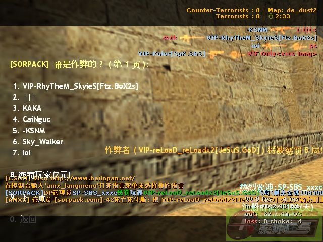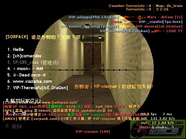 | -- 作者:PakTo -- 发布时间:2011-07-30 15:37:00 -- 录制者:faaf 嫌疑人:VIP-CapTain_OdO[SpK.SBS] 时间:2011年07月30日 11:18:27 服务器:[sorpack.com]-42死亡死斗服(Ftz.BoX2s) 地图:de_inferno 11:18:29 CS.PCgames.com.cn m4a1--> VIP-CapTain_OdO[SpK.SBS] 11:18:48 VIP-CapTain_OdO[SpK.SBS] m4a1--> zzzzzzzzzzzzzzzz 11:19:02 VIP-InSoLiToR xm1014--> VIP-CapTain_OdO[SpK.SBS](爆头) 11:19:18 VIP-CapTain_OdO[SpK.SBS] m4a1--> malixiaMg 11:19:21 VIP-CapTain_OdO[SpK.SBS] m4a1--> 27370147 11:19:25 mamamama xm1014--> VIP-CapTain_OdO[SpK.SBS] 11:19:35 CS.PCgames.com.cn m4a1--> VIP-CapTain_OdO[SpK.SBS](爆头) 11:19:40 VIP-CapTain_OdO[SpK.SBS] m4a1--> 1745录制者:fa 嫌疑人:VIP-xiaojue 时间:2011年07月30日 10:29:37 服务器:[sorpack.com]-03死亡死斗服() 地图:de_train 10:29:44 4399 m4a1--> VIP-xiaojue 10:29:50 VIP-xiaojue ak47--> @~Dead zero~@ 10:29:52 VIP-xiaojue ak47--> VIP-ailaopo[PhX.Chicken] 10:30:04 VIP-like530[Gemini.Astr] g3sg1--> VIP-xiaojue 10:30:19 junt awp--> VIP-xiaojue(爆头) 10:30:31 VIP-xiaojue awp--> + moon= + MM 10:30:57 VIP-xiaojue awp--> www.xiazaiba.com 10:31:04 VIP-xiaojue awp--> www.xiazaiba.com 10:31:12 VIP-xiaojue awp--> VIP-Man_Man_Tao[Gemini.Astr] |