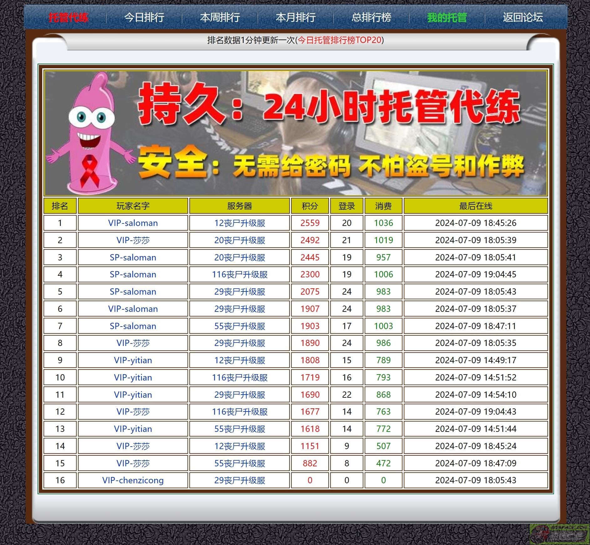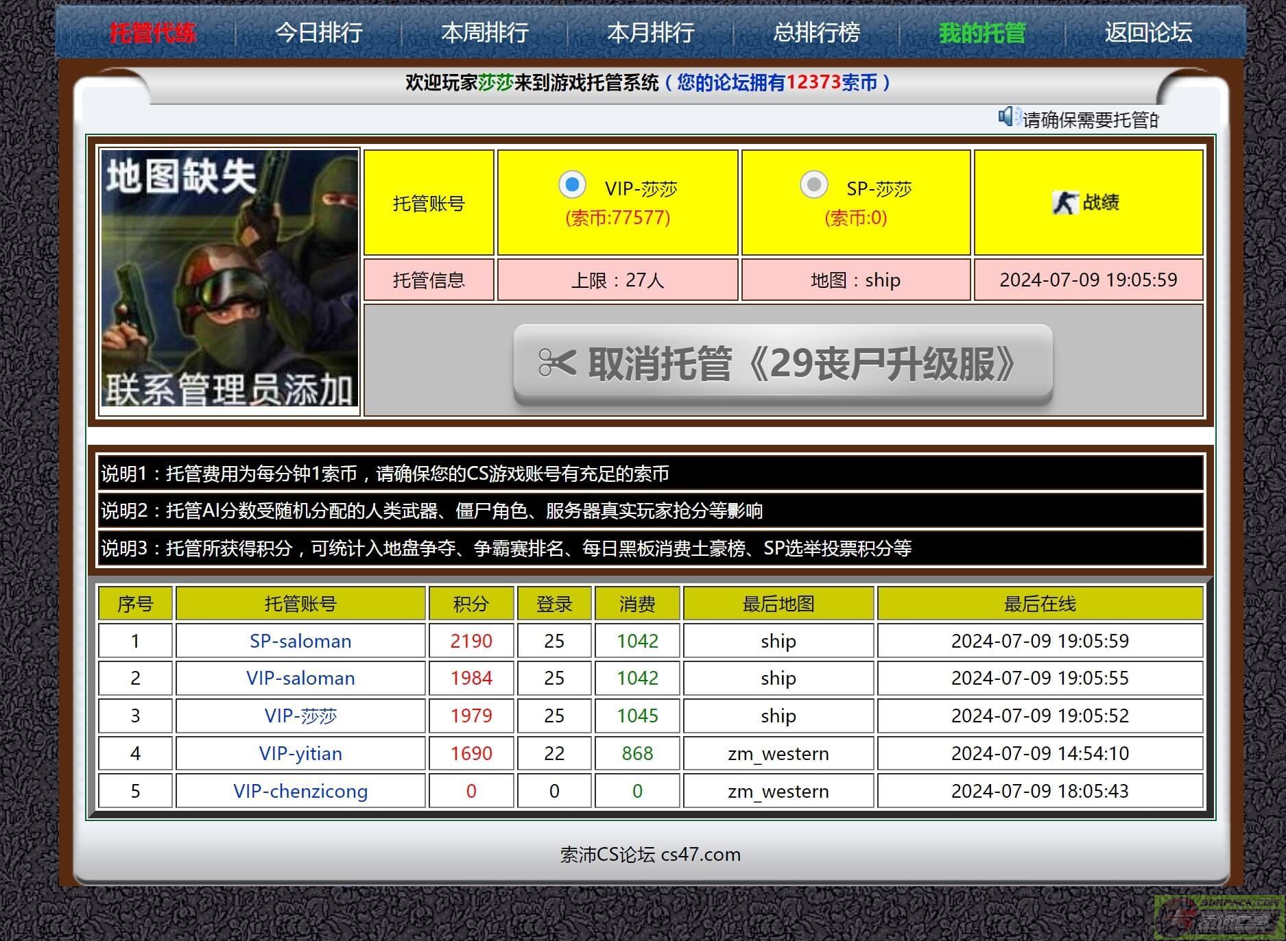 | -- 作者:saloman -- 发布时间:2024-07-09 19:21:00 -- 索沛代肝系统(不用再熬夜伤身体了) 有时候晚上很困了,但是为了升级一直还在熬夜,年轻的时候还可以,年级大了就顶不住了。 加上现在使用电脑的人越来越少了,即使家里有电脑,也很少开机。 现在索沛有托管系统了,当你没空或者累的时候,就可以随时开启,让你的账号一直在线升级。 同时也避免了,有些人把账号密码给别人帮忙升级,导致被盗或开挂作弊等纠纷。 AI系统接入升级,会受到很多种影响,分数肯定比真实玩家要少很多。 例如随机分配的人类武器、僵尸角色、是否当人王、尸王、服务器真实玩家抢分等影响,所以分数多少看运气! 托管所获得积分,可统计入地盘争夺、争霸赛排名、每日黑板消费土豪榜、SP选举投票积分等 功能刚刚推出,具体玩法请大家自己摸索,有bug请反馈,有奖励! 访问地址:http://sk00.com/new_plus/tg/ (也可以从个人战绩那里点击进去) 此主题相关图片如下:![]() 此主题相关图片如下:![]() 此主题相关图片如下:![]() 此主题相关图片如下:![]() 另外大量招聘技术人才,为索沛CS添砖加瓦,工作地点深圳宝安区 要求会制作模型、熟悉cs插件、c++编程等。 此主题相关图片如下:![]() |