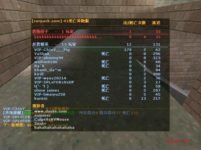 | 以文本方式查看主题 - 索沛CS1.6论坛 CS反作弊 CS1.6下载 amxx sma插件 cs对战平台 (http://www.sk00.com/index.asp) -- 死亡奔跑服大厅 (http://www.sk00.com/list.asp?boardid=45) ---- 我在4lifte地圖上最高的成績..@O@ (http://www.sk00.com/dispbbs.asp?boardid=45&id=107232) |