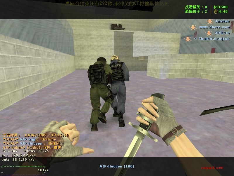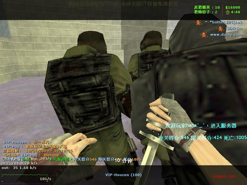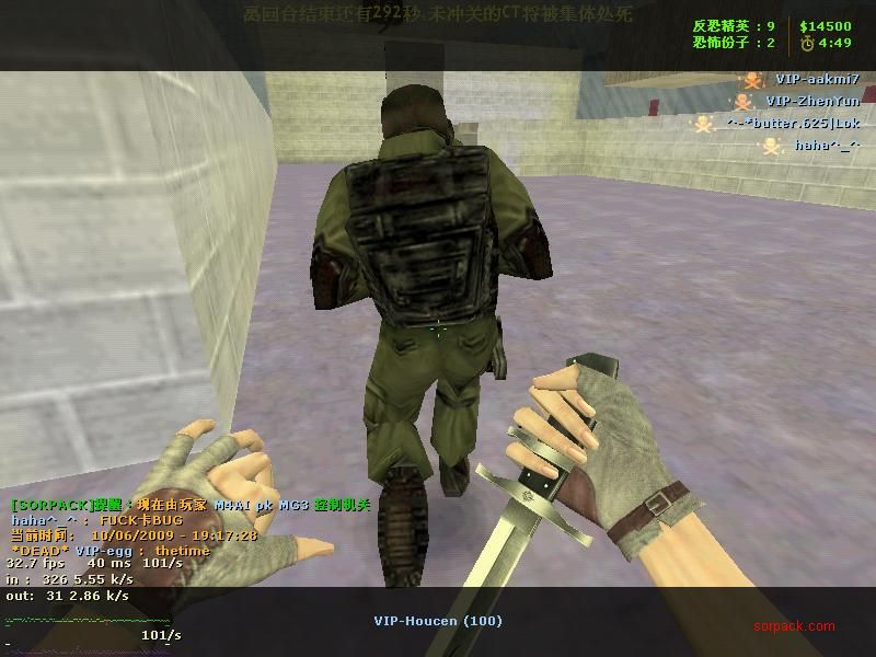 回4楼: 因为我很喜欢那把刀跟那把枪.......别人改的模组觉得没比这仔细....之前的火线龙刀厌倦了...换换口味..用v档应该没犯法吧....别人看我也是普通的刀...普通的枪^^ 回6楼: 的确有人玩bug 可是还是有5~6个普通玩家.vip玩正常的(怕被我拍到吗!?) 楼梯方面我觉得地图作者是故意耍人的...不过作者有留上楼梯方法...没关系吧... 我发贴集中于V I P们...因为普通玩家很多.随便改一改名字就可以了 而VIP以身犯法.怎么改也是这个名字 可以重新申请vip是没错.申请也要时间..回覆贴子也要.要是vip们改成普通的名字我没意见啰...
