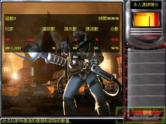 | -- 作者:__________Emp -- 发布时间:2011-08-08 0:25:00 -- 1_ZZST 你输咯。 哈哈。不管什么原因。总之我赢了。把你这个高手赢了。 说实话,你的战术太厉害了。偷我总部。我都不知道。才刚开始。 你都造了那么多了。我什么都没造。打败我,小事一桩- -