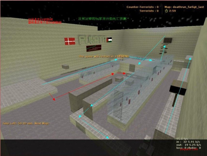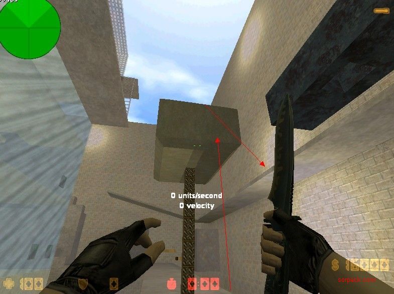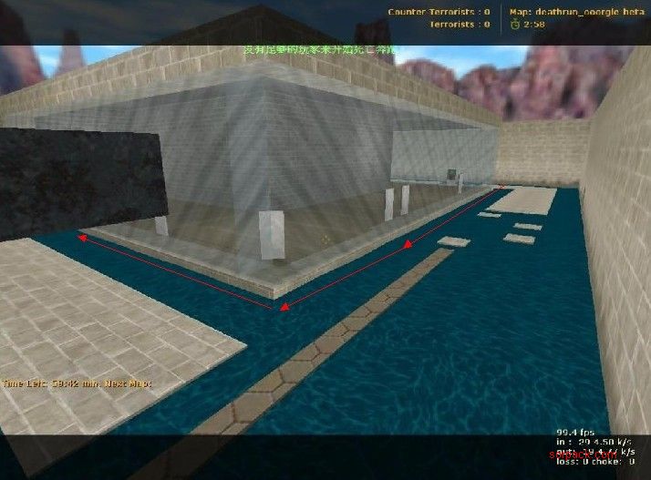 当CT到达锤子顶部 如图所示 可从锤子跳往箭头指处 直接到了上3楼的地方.3楼机关仅仅4个.况且如果T看不到的情况下.1分钟内CT WIN.