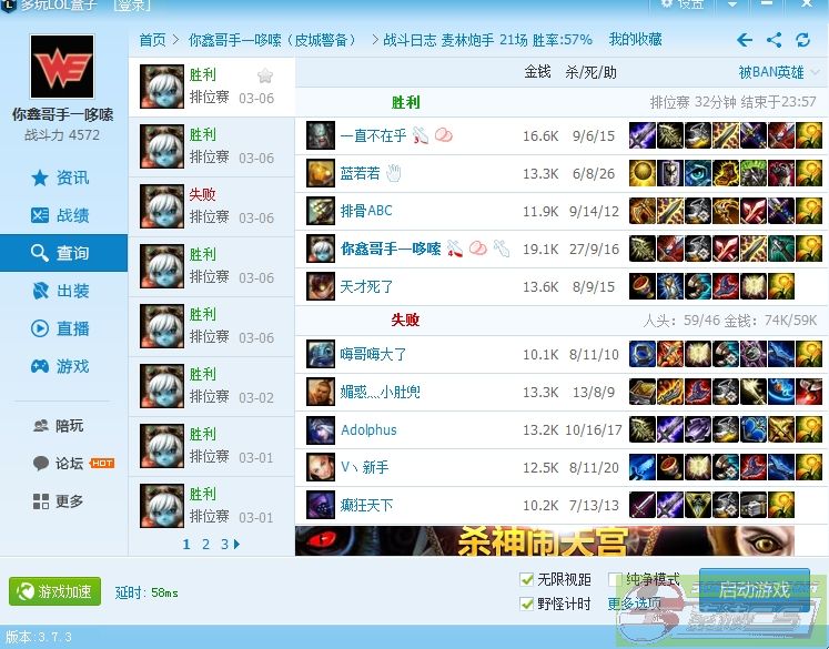 4500战斗力 呵呵 小炮 代练的战绩图我没有 我比不上你哦