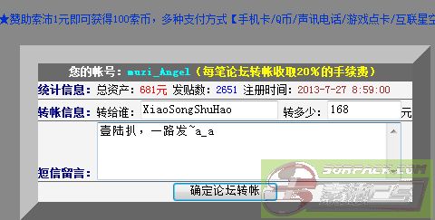 赞助索沛(1元=100索币)