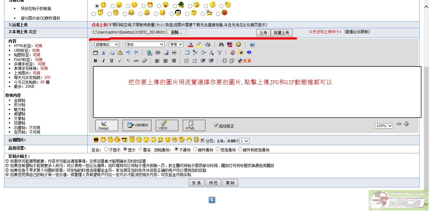 字体颜色 字体背景颜色 粗体 斜体 下划线 超级连接 引用 清理代码 上传图片 表情库