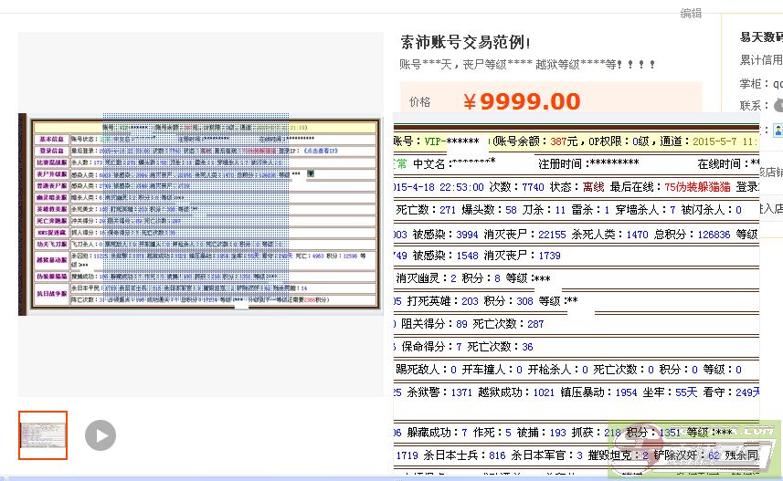 账号卖点:丧尸****级,越狱*****级等,非常的吊,有多牛逼,详情看下列图!!!