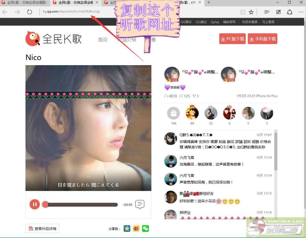 教程第一步:打开“全民K歌”官网,登录你帐号或者查看其他人听歌网址
