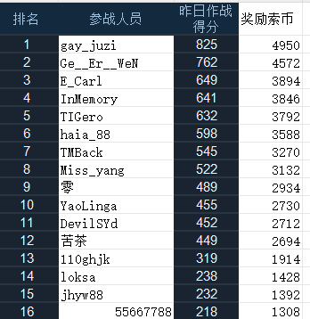 战绩排行