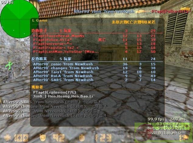 下图体现我意识下流 走位风骚 枪法*** 无烟不白 千里眼 高科技等等全面的技战术水平