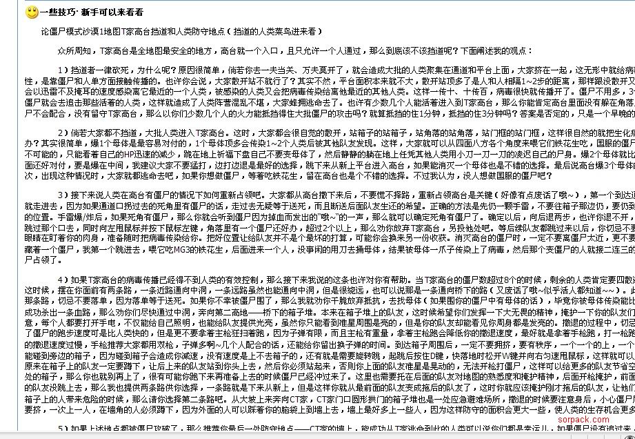 是老玩家的话你们去看看 Mas-sKe发的贴 一些技巧· 新手可以来看看 我要揭穿他.....他的贴是复制天狗论坛上的人然后又复制到索赔..索赔的僵尸是20秒才变的吗?索赔有毁灭者吗?..难道索赔的技术还没天狗的好吗??你就为了那点发帖钱和跟贴钱你就出卖索赔? 你不仅害了新手 害了我 最重要的是如果天狗的人看到他们的贴在索赔里面 他们会怎么想??你真的很垃圾 多的我也不想说了...你好自为之....老大?这个人该当何罪 看着办吧 大家也来说说