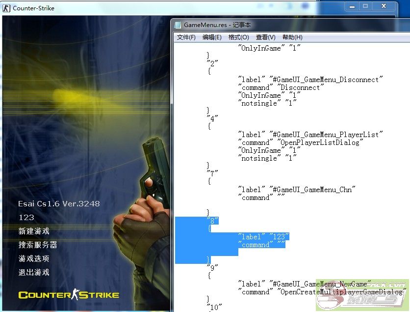 好吧,主界面这个Esai Cs1.6 Ver.3248看着真碍眼啊,我们改掉它。