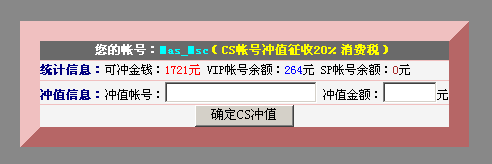 您的帐号:mas_meng(CS帐号冲值征收20%消费税)
